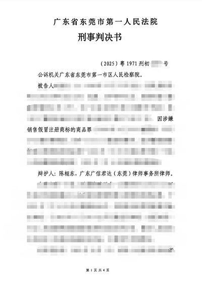 当事人涉嫌销售假冒注册商标的商品罪,我所陈律师介入后,为当事人争取被害单位谅解,并引导当事人认罪认罚,主张情节轻微等,最终为当事人争取缓刑。
