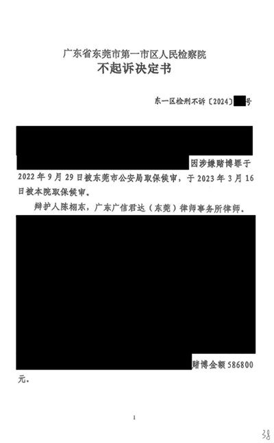 2021年,刘XX涉嫌收取多人赛马投注,金额58万,我所陈律师介入后,为当事人争取不起诉的结果。